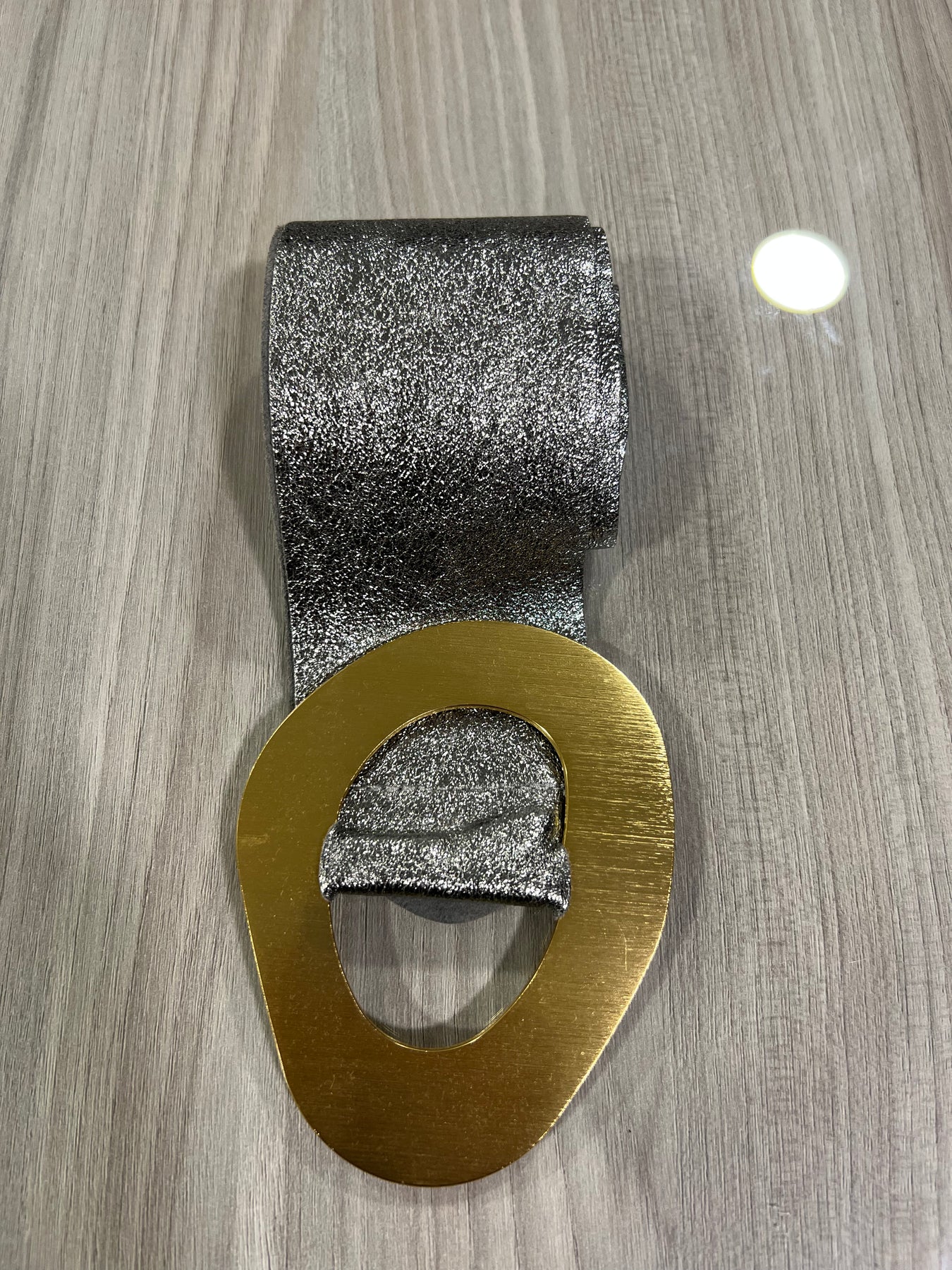 Cinturón cuero metalizado italiano Acero