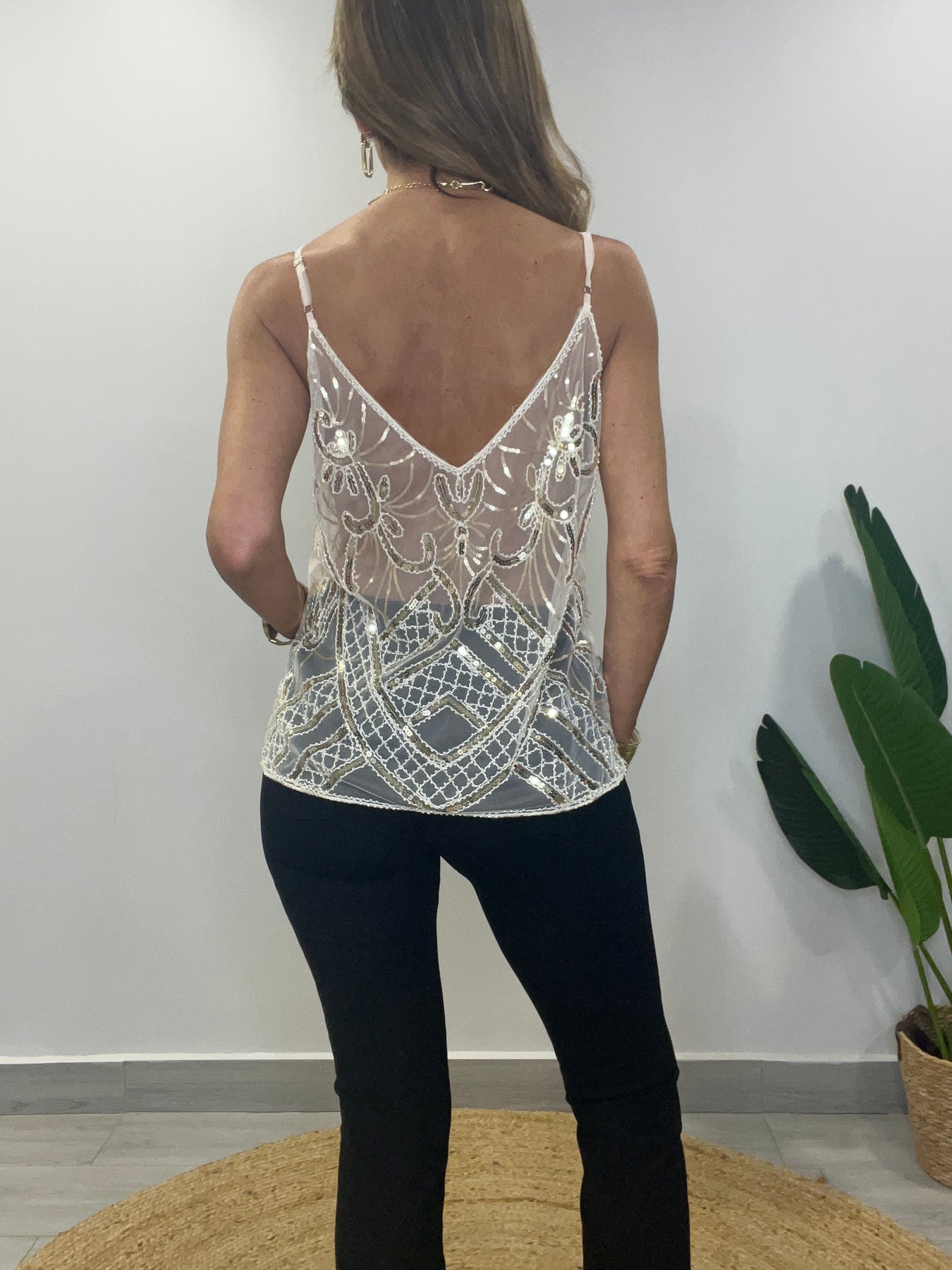 Peto Brillo lentejuelas Champaña